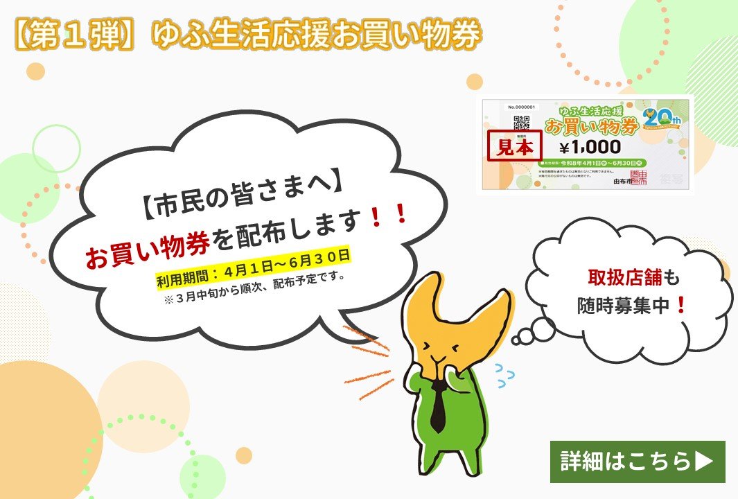 - 「【第1弾】ゆふ生活応援お買い物券」をお届けします!