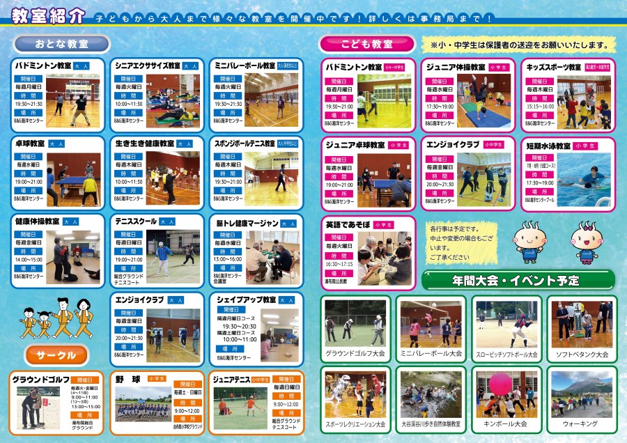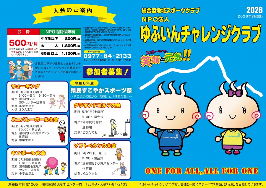 | チャレンジクラブパンフレット2026(外側)(内側) | 全戸配布 | スポーツ振興課 | 湯布院地域 |