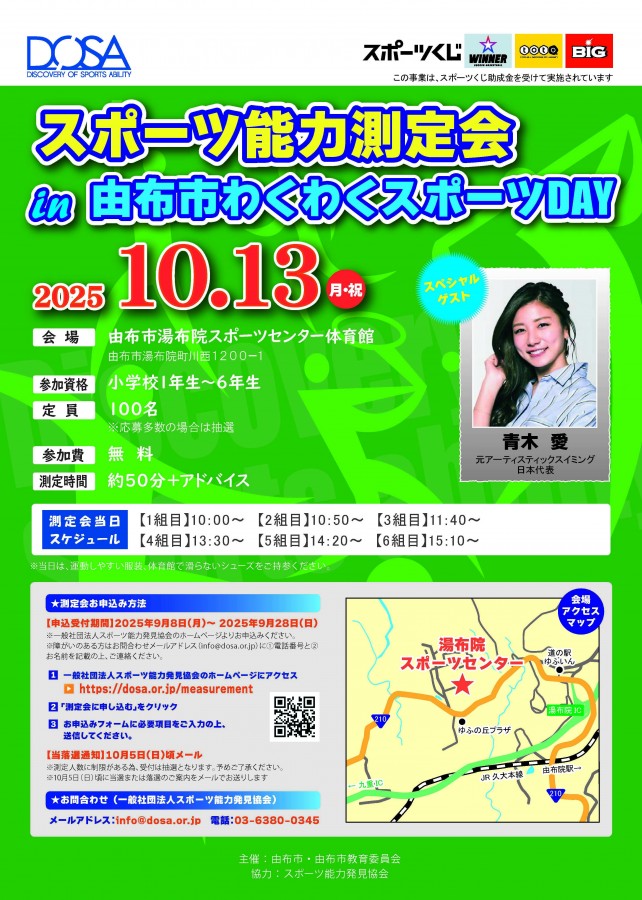 申込多数の場合は、由布市民を優先した上で抽選いたします。スポーツ能力測定会